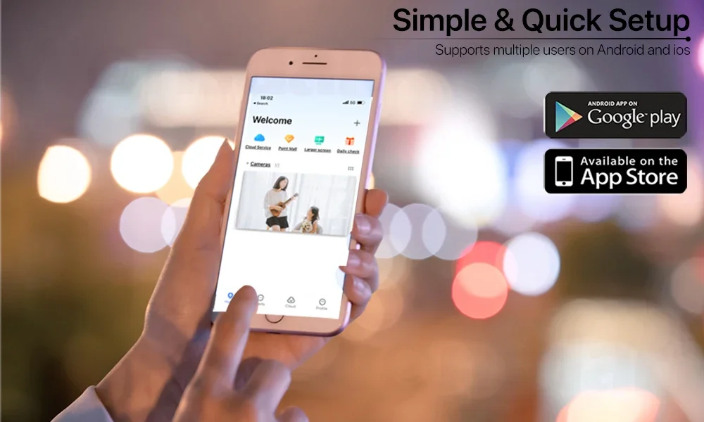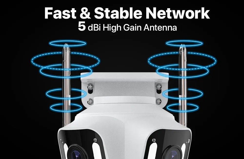 Esta câmera PTZ WiFi tem um corpo e uma caixa sólidos, a classificação à prova d'água de nível IP66 a torna ideal para vigilância externa.Ele pode suportar condições climáticas adversas.incluindo chuva, neve, frio intenso e calor