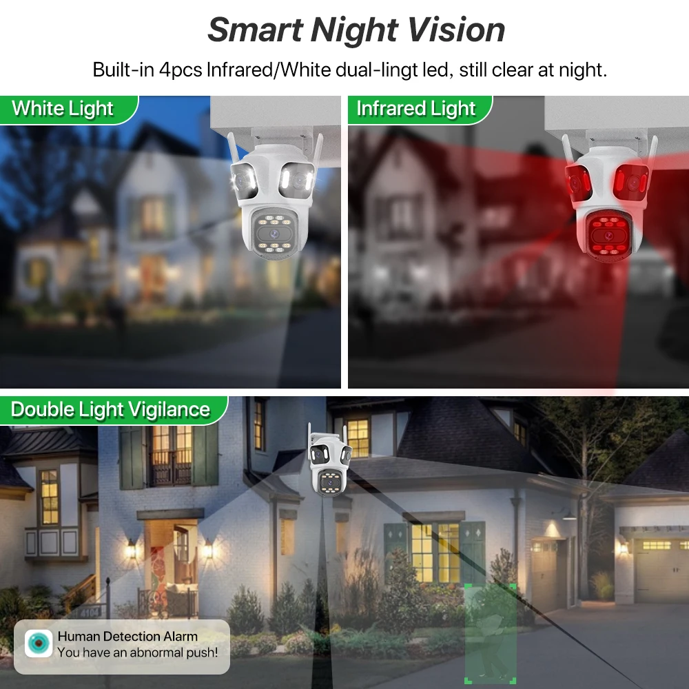 ?Design de fonte de luz dupla, luz infravermelha embutida + luz branca, visão noturna infravermelha e visão noturna em cores podem ser definidas;
