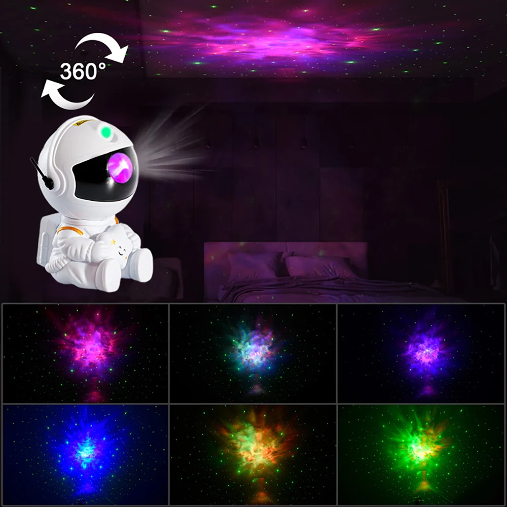 Com design criativo em formato de astronauta, este projetor cria um show de luzes estreladas e nebulosas coloridas, perfeito para: